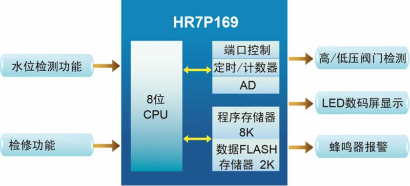 功能說明: ①水位可檢測。 ②檢修提示。 ③缺水提示。 ④自動清洗。 ⑤自動凈水 ⑥LED屏顯示。 | 特征說明: ①掉電數據可存儲在芯片中。 |